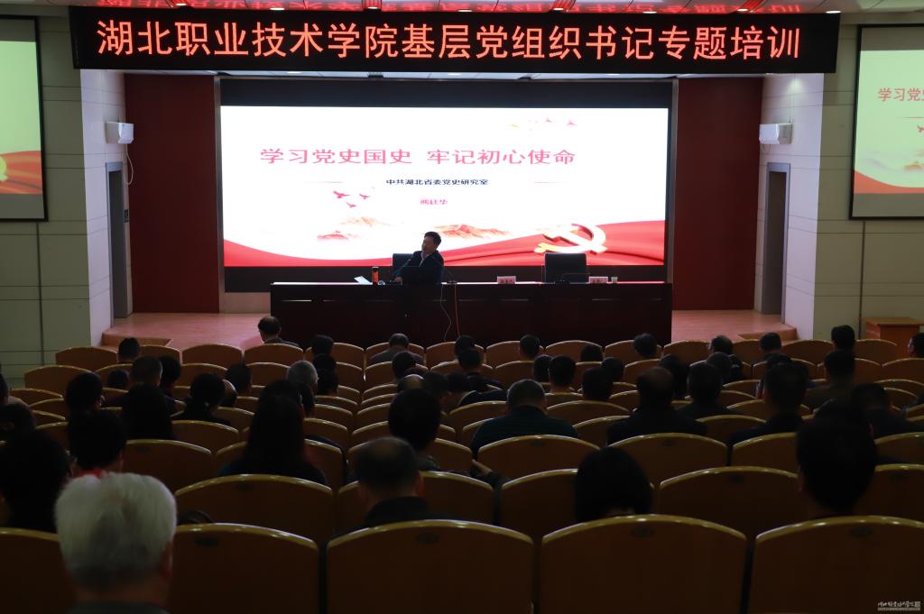 根据学校主题教育工作安排部署,10月31日下午,学校在文博馆学术报告厅开展基层党组织书记学习党史国史专题培训会。湖北省委党史宣讲团成员、省委党史研究室宣教处处长熊廷华应邀来校作党史国史专题讲座。学校基层党组织书记、副书记等党员干部参加学习,党委委员、副校长刘发兴主持培训会。