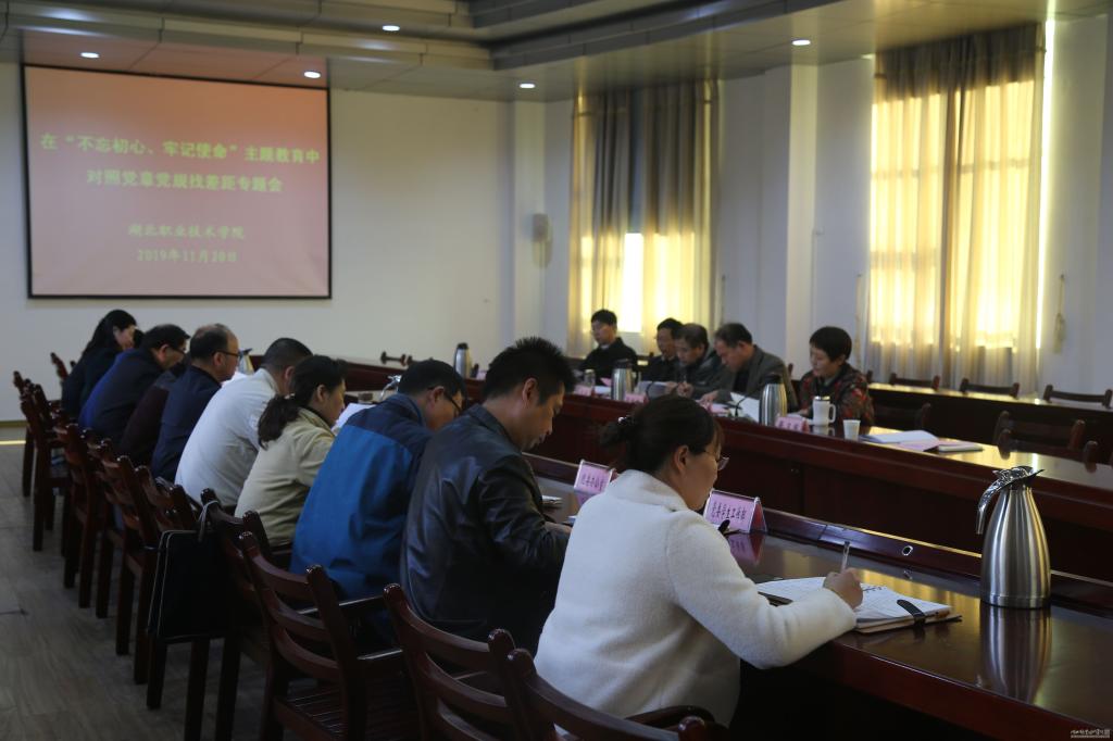 根据孝感市及学校“不忘初心、牢记使命”主题教育部署安排,11月20日,学校党委召开主题教育对照党章党规找差距专题会议。孝感市委第八巡回指导组组长李家庆等到会指导,党委领导班子成员参加了会议。会议由党委书记张国雄主持。
